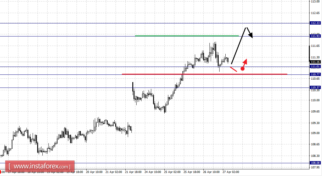 По паре Доллар/Иена ключевыми уровнями в масштабе являются: 112.33, 111.93, 111.01, 110.77 и 110.37. Здесь предел для восходящего цикла от 17 апреля ограничен уровнем 112.33, движение к которому ожидаем после пробоя 111.95. Диапазон 111.01 – 110.77 является ключевой поддержкой для верха, его проход ценой будет располагать к развитию углубленного движения, в данном случае цель – 110.37, этот уровень является ключевой поддержкой для верха.Основная тенденция: восходящая структура от 17 апреля.Торговые рекомендации:Buy: 111.95 Take profit: 112.30Buy: Take profit:Sell: 111.00 Take profit: 110.78Sell: 110.75 Take profit: 110.40