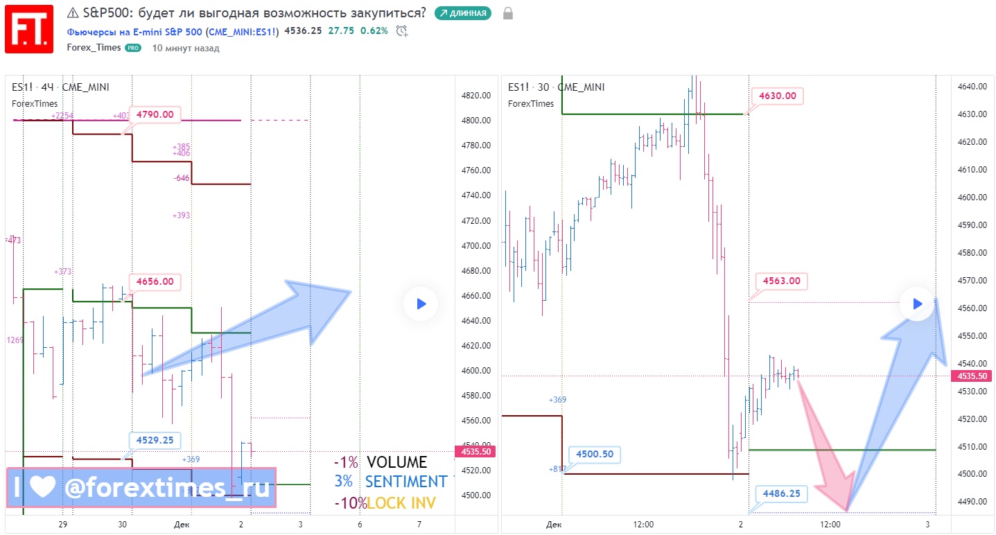 За прошедшие торговые сутки реализовалось среднесрочное снижение S&P500 к актуальному уровню убытка маркетмейкера (4500.50).