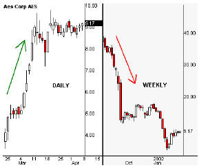 Один из важнейших факторов, которые усложняют анализ рыночной стадии заключается в том, что рынок существует в более чем одном временном формате. Другими словами, рынки будут в одной стадии на недельном графике, в другой стадии на дневном графике и еще в третьей на внутри-дневном графике. Трейдеры должны снять противоречия между трендами в различных временных форматах, чтобы получить соответствующий прогноз ценового действия и использовать в своих интересах определенную рыночную стадию.