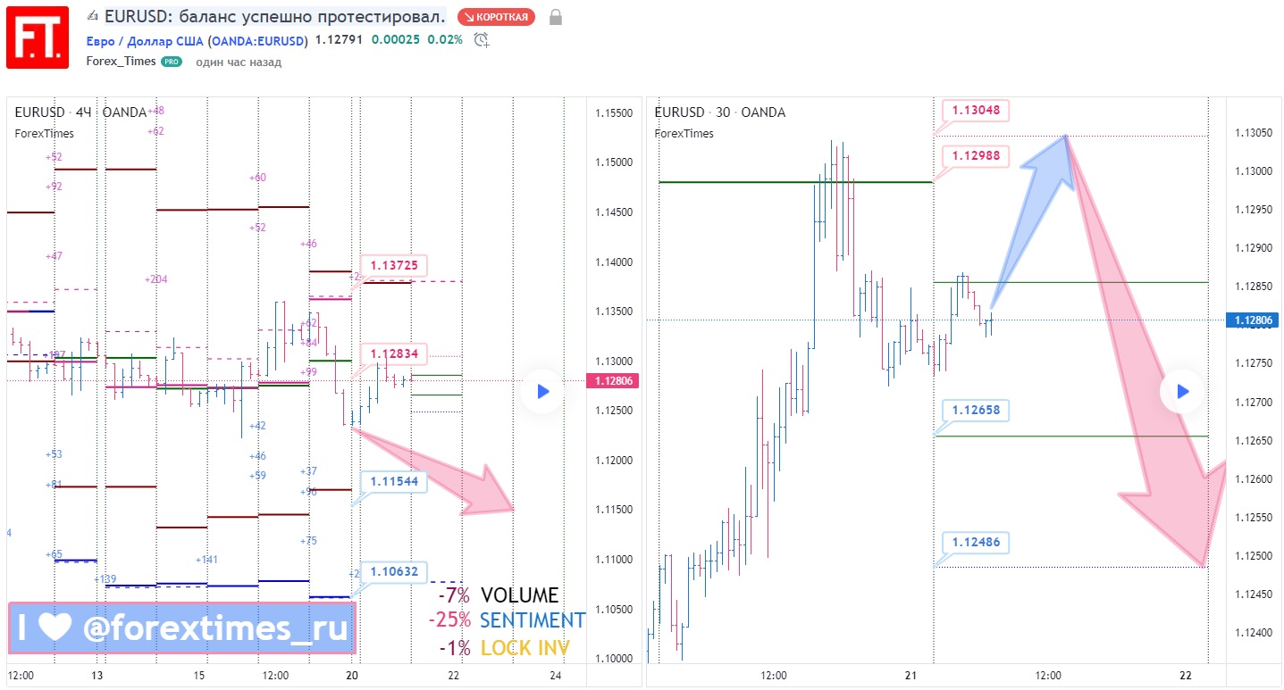 ☝️ Напоминаем, что актуальный недельный прогноз расположен на графике H4 слева, а свежий дневной прогноз размещен на графике M30 справа.