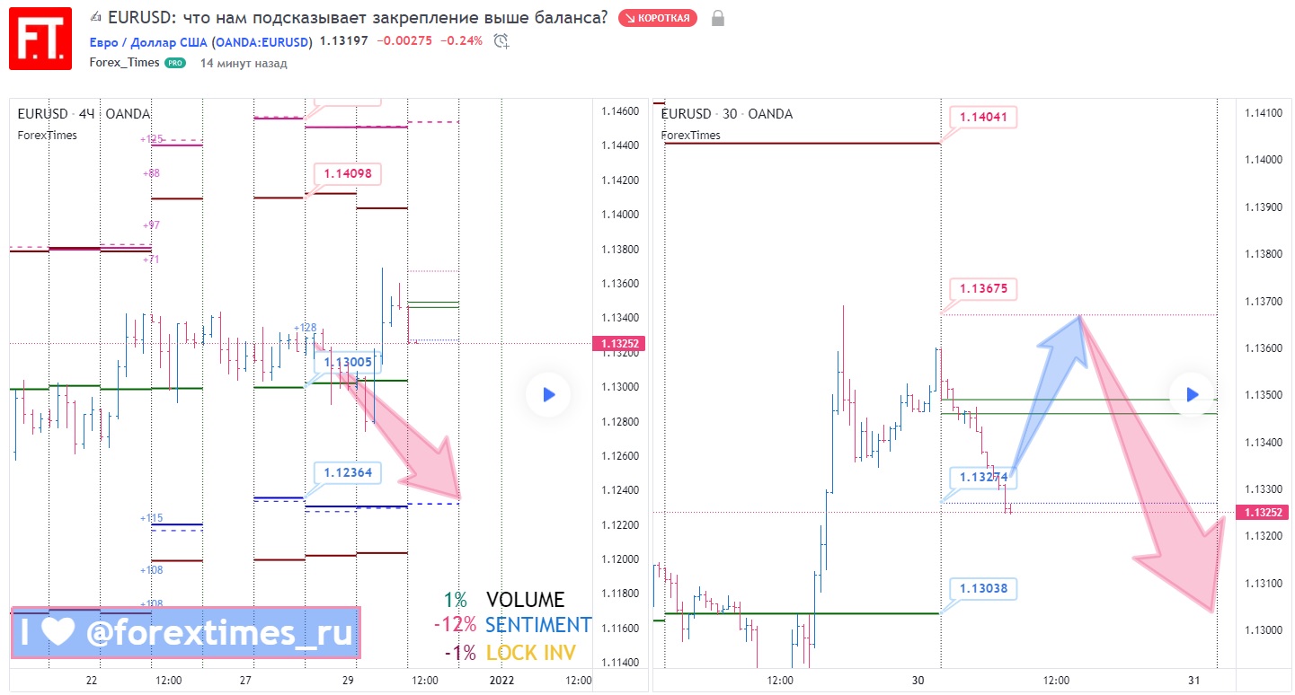 ? По результатам торгов в среду, 29 декабря, мы закрепились выше актуального на сегодня баланса недели (1.1303).