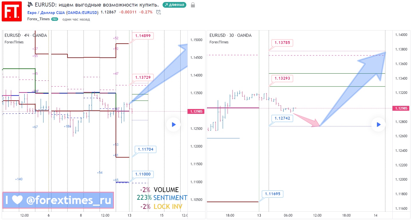 ☝️ Напоминаем, что актуальный недельный прогноз расположен на графике H4 слева, а свежий дневной прогноз размещен на графике M30 справа.