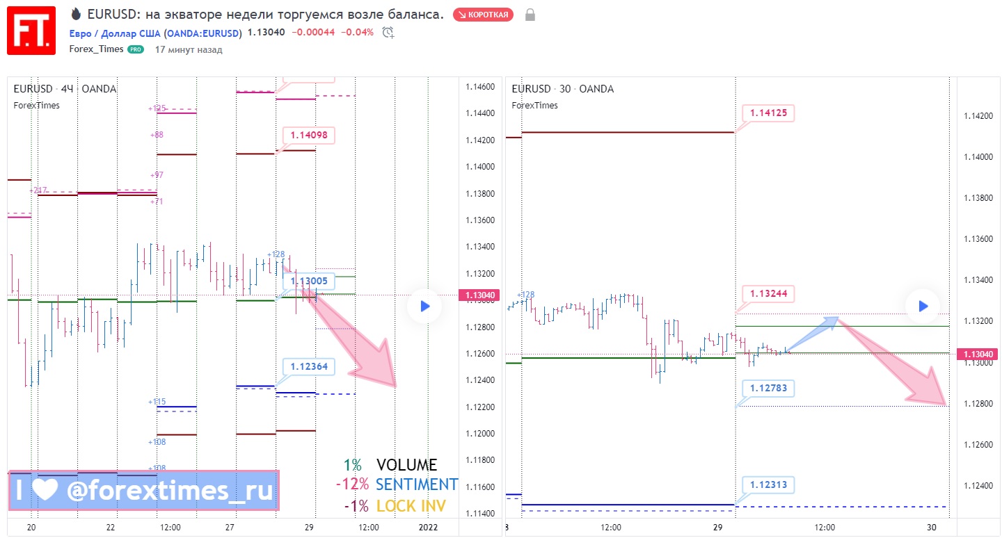 ☝️ Напоминаем, что актуальный недельный прогноз расположен на графике H4 слева, а свежий дневной прогноз размещен на графике M30 справа.