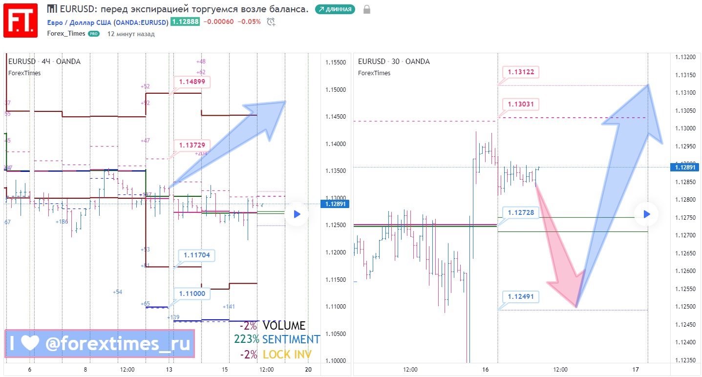 ☝️ Напоминаем, что актуальный недельный прогноз расположен на графике H4 слева, а свежий дневной прогноз размещен на графике M30 справа.