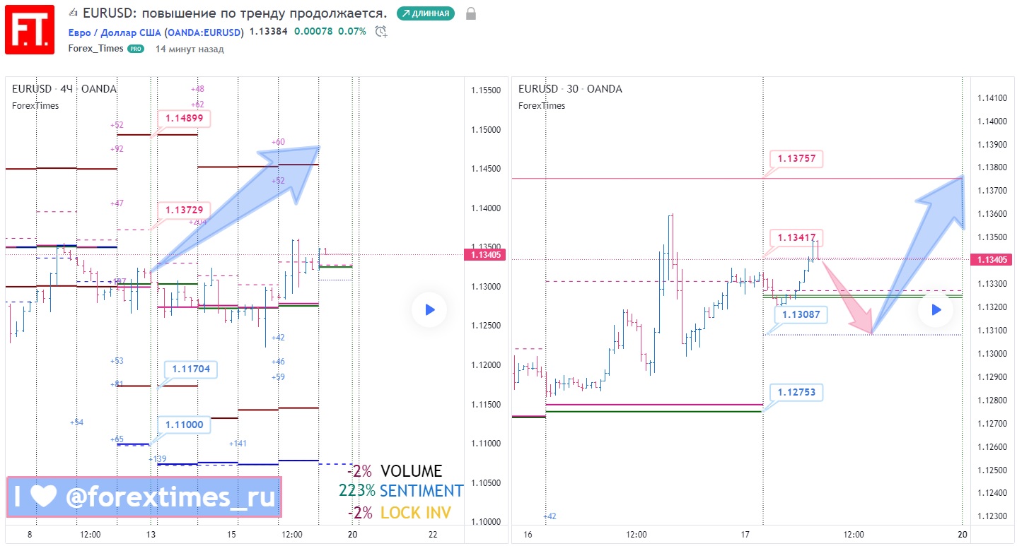 ☝️ Напоминаем, что актуальный недельный прогноз расположен на графике H4 слева, а свежий дневной прогноз размещен на графике M30 справа.