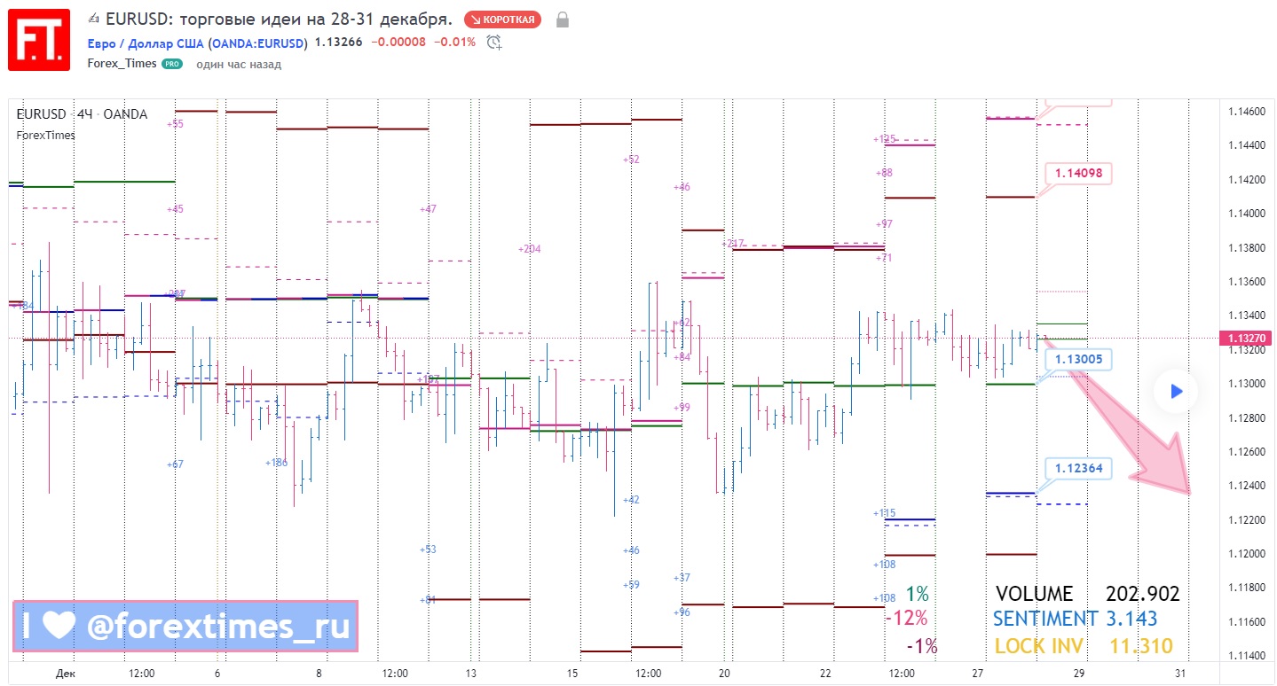 В случае достижения обозначенного уровня сопротивления ожидаем формирование паттерна на продажу и последующее снижение с ближайшей целью,- баланс недели (1.1300).