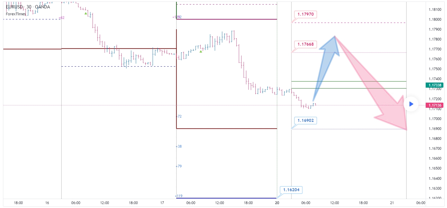 Основным сценарием развития событий на сегодня выступает успешный тест ценовой области сопротивления 1.1766-1.1797 и последующее снижение с целевым ориентиром,- лимитный покупатель (1.1690).