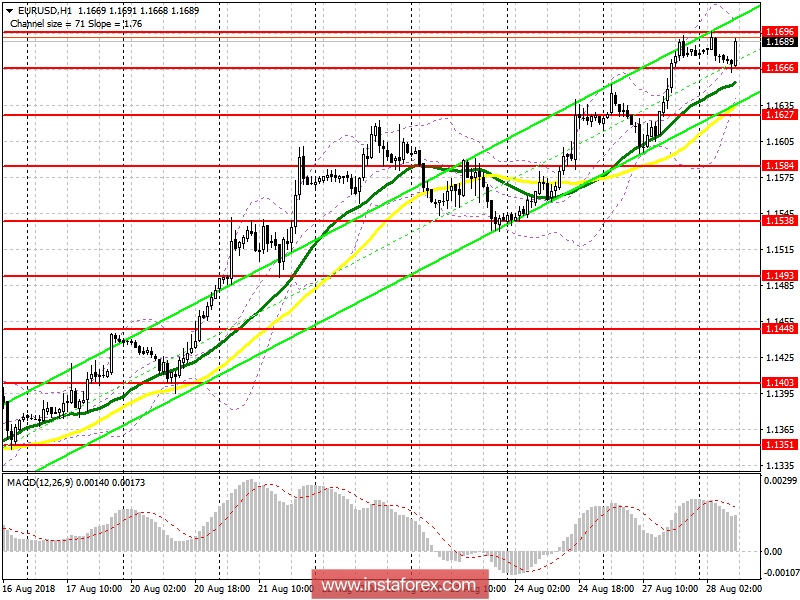 Покупателям сегодня следует опасаться ложного пробоя на уровне 1.1696 и отскока цены пары EUR/USD от 1.1721 с формированием дивергенции на индикаторе MACD. Лучше всего на длинные позиции рассчитывать после реального закрепления выше 1.1696 ко второй половине дня с целью роста в район 1.1721 и 1.1744. В случае снижения EUR/USD, покупать рекомендую только на отскок от 1.1627 и от поддержки 1.1584.