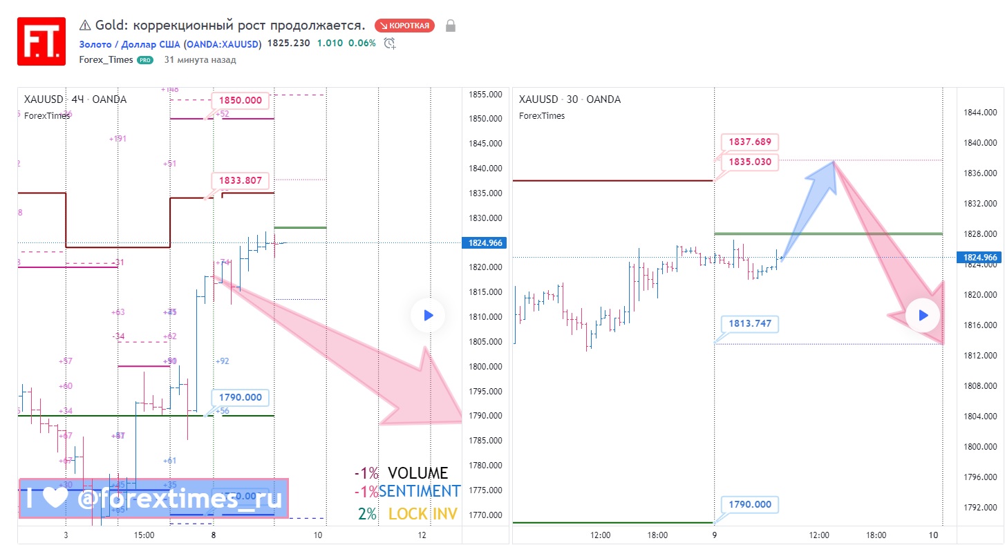 Ближайшим сопротивлением по Gold на сегодня выступает уровень убытка маркетмейкера (1835.03).