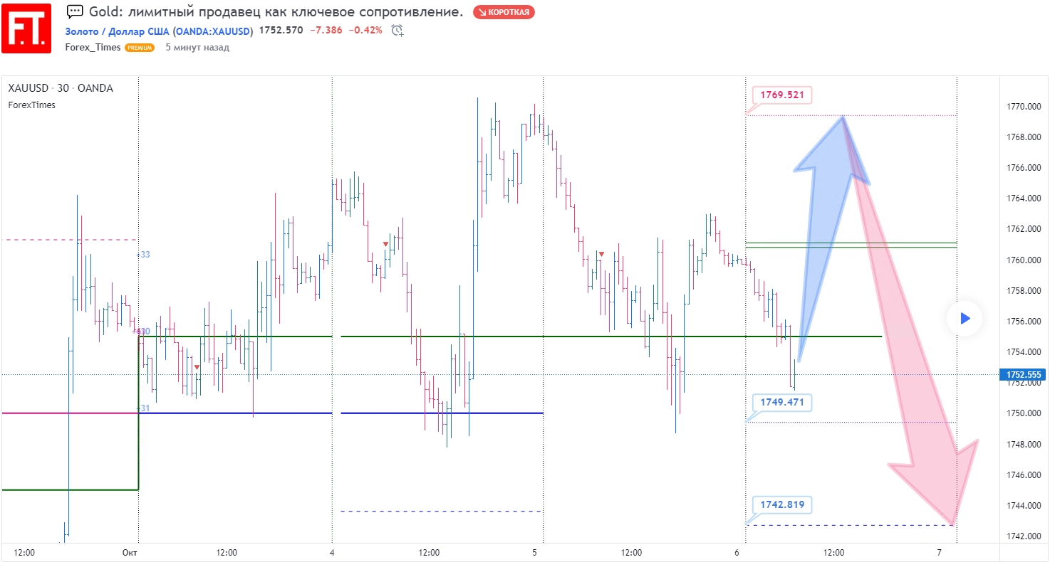 В случае успешного теста лимитного продавца (1769.52) будет возможность выгодно продать с ближайшим целевым ориентиром,- лимитный покупатель (1749.47).