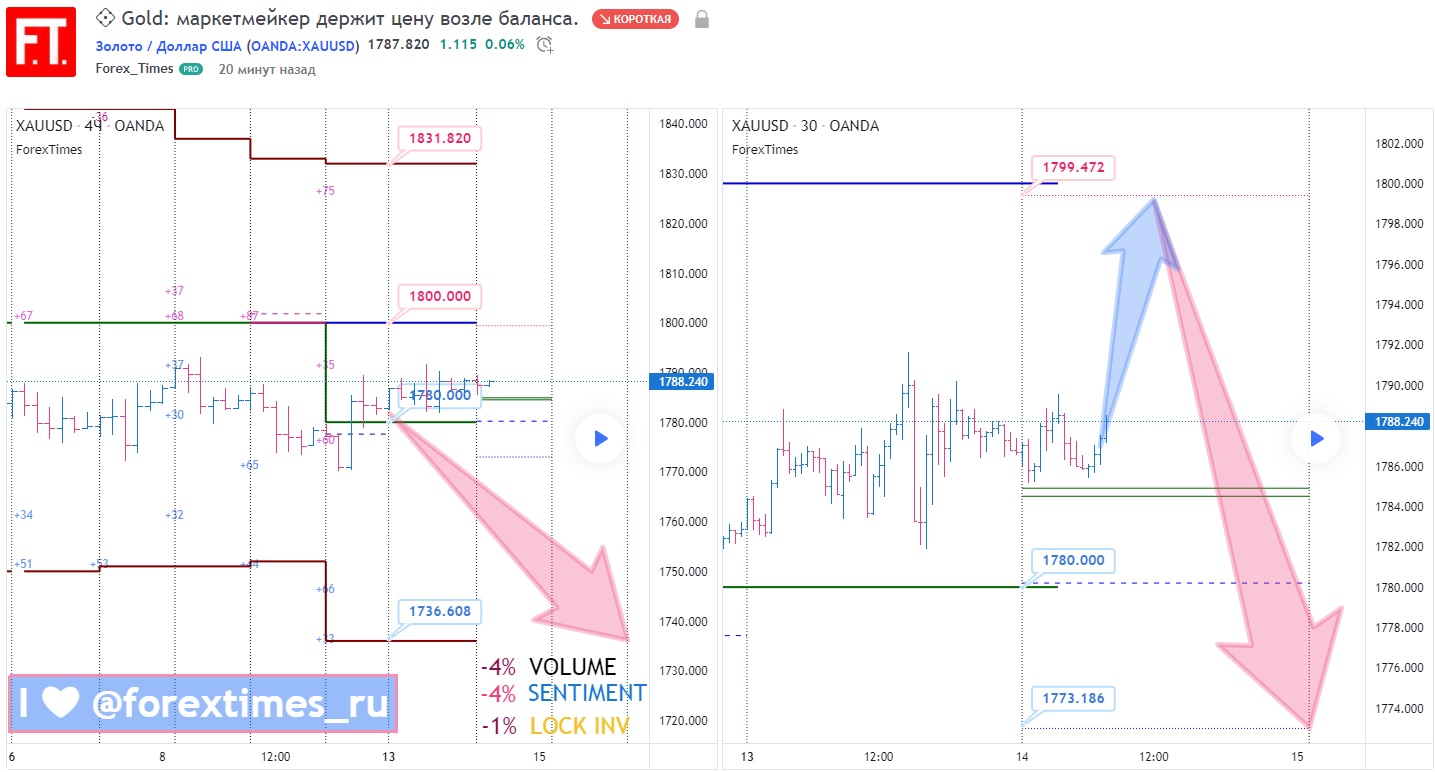 В случае теста на протяжении торговых суток уровня лимитного продавца (1799.47) ожидаем снижение к актуальному на текущий момент уровню баланса недели (1780.00).