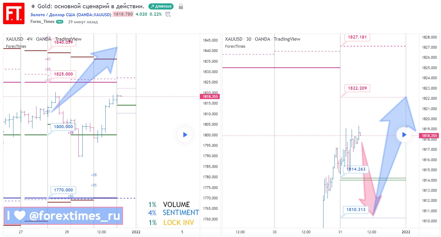 ☝️ Напоминаем, что актуальный недельный прогноз расположен на графике H4 слева, а свежий дневной прогноз размещен на графике M30 справа.
