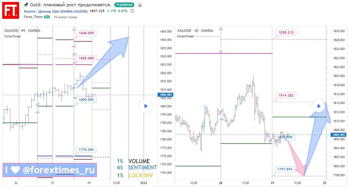 ☝️ Напоминаем, что актуальный недельный прогноз расположен на графике H4 слева, а свежий дневной прогноз размещен на графике M30 справа.