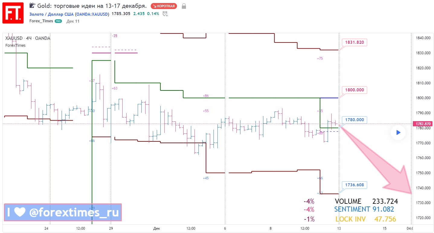 В случае формирования паттерна на продажу возле ценовой отметки 1800.00 ожидаем приостановку повышения и продолжение снижения с ближайшей целью,- баланс маркетмейкера (1780.00).