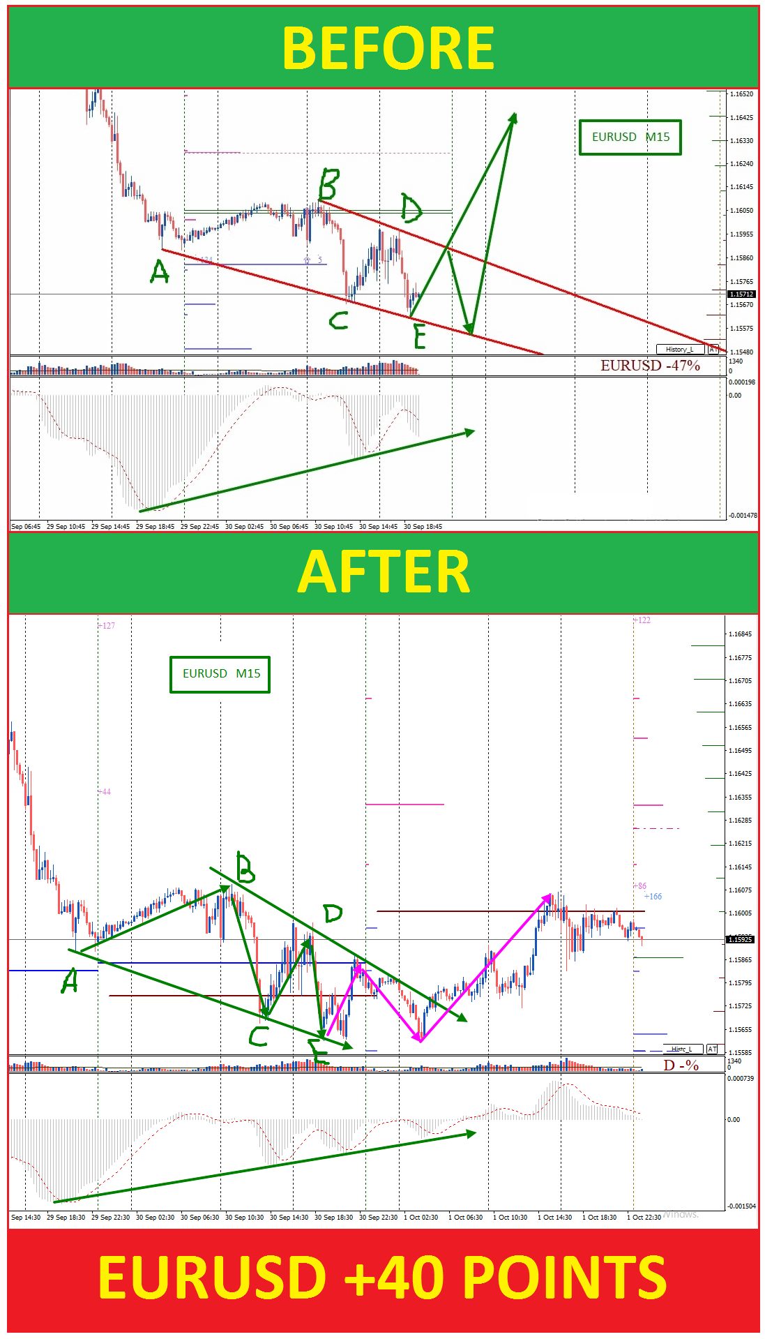 Отработка “Волновой разметки” по EURUSD за сутки.