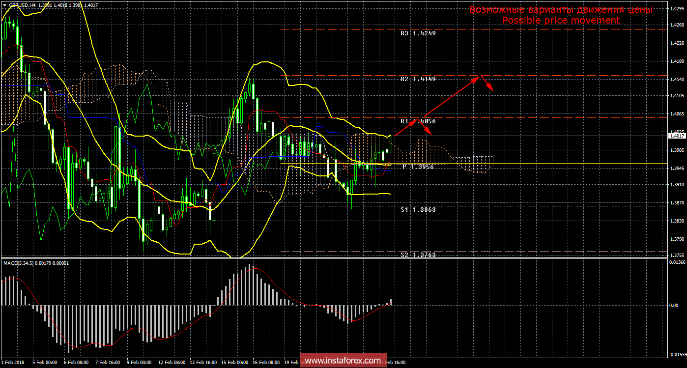 С технической точки зрения, сейчас отрабатывается новый сигнал на покупку от Ишимоку, цена закрепилась выше облака Ишимоку, таким образом длинные позиции сейчас являются актуальными с целью первый уровень сопротивления 1,4056. Полосы Боллинджера по-прежнему направлены вниз(!), что свидетельствует о нисходящей тенденции по валютной паре. Разворот индикатора MACD вниз может указать на начало нисходящей коррекции. Отскок цены от первого таргета также может спровоцировать виток коррекционного движения. Средняя волатильность по валютной паре составляет 104 пункта в день.