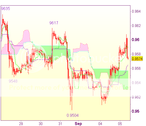 На торгах 4 сентября доллар упал до 0,9507. Тем не менее, уровень 0,9504 сыграл роль поддержки, и далее последовало движение вверх. Не стоит исключать возможности консолидации с небольшим уклоном вверх и похода курса к 0,9617. Тем не менее, максимум прошлой недели 0,9635, по всей видимости, ограничит восходящую волну и вызовет откат.