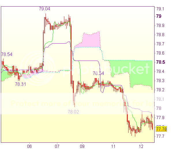 Прорыв 78.02 (предыдущая поддержка) может привести пару к нижней границе облака Ишимоку (78.25), а затем к 78.34 (максимум 10 сентября). Пробой 78.52 (верхняя граница облака Ишимоку) подтвердит эти предположения.