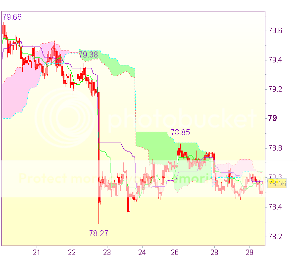 Если сопротивление 78,85 не устоит, можно предположить об образовании минимума. После этого пара может направиться к 79,00. В случае прорыва можно говорить о завершении падения от 79,66 и последующем движении к 79,38. В случае пробоя последней отметки активность "быков" усилится, что откроет паре путь к 79,66.