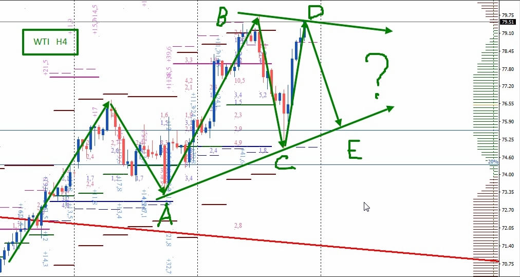 По торговому инструменту WTI очень возможно движение цены в рамках "Треугольника".